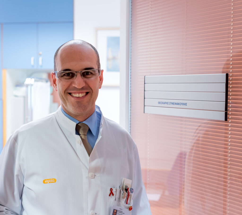 Για να ζητήσετε τον κ. Συνειφακούλη ως θεράποντα ιατρό σας, μπορείτε να δηλώσετε το όνομά του κατά την εισαγωγή σας στο νοσοκομείο ή να επικοινωνήσετε απευθείας μαζί του στο τηλέφωνο (+30) 694 4468725.